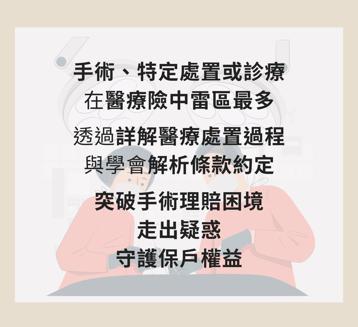 從基礎到實務,從架構到步驟,逐步建構拆解手術理賠難題的能力